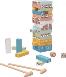 Discover the charm of the Wooden Game Wobbling Tower by WOOPRIE. It is a perfect combination of a game and an educational tool that entertains while supporting your children's development. This amazing set includes: