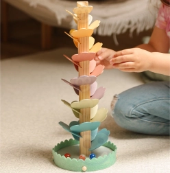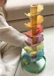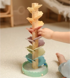 The wooden musical tree, known as a marble tree, turns every marble drop into a calming concert. The colorful “leaves” form a track along which the marbles travel downward, creating pleasant, gentle tones at every touch. The toy fosters focus, patience, and natural curiosity.