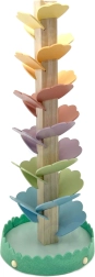Each marble dropping onto a colorful “leaf” creates a soft sound reminiscent of a dulcimer. Children connect visual stimuli with musical ones and develop sensory perception.