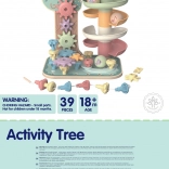Active Tree WOOPIE GREEN is a carefully designed educational set that combines up to four different activities, supporting comprehensive child development from 18 months of age. It includes a colorful ball track tower, sensory gears, peg hammering, and creative threading – all in beautiful pastel finishes and ensured with safe, durable materials.