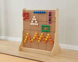 The pegs easily fit into perforated STEM boards. Children can arrange animals, cars, letters, and numbers while developing logical thinking and patience.