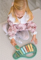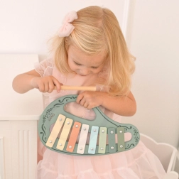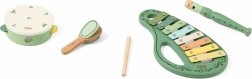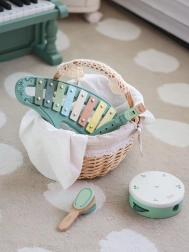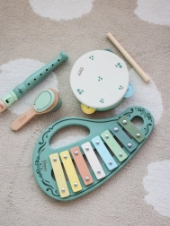 This stylish set in a vintage look includes everything little ones need to explore the world of sounds: a glockenspiel (xylophone), tambourine, flute/recorder, castanet, and a mallet. Thanks to the combination of wood and metal, the instruments have a pleasant sound and withstand everyday play.
