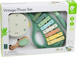 Discover the joy of music with this wooden vintage musical instrument set by CLASSIC WORLD. Pastel colors, quality craftsmanship, and safe, rounded edges make this set an ideal choice for those first musical steps. It fosters creativity, rhythm, and hearing, and makes a perfect gift for children from 18 months.