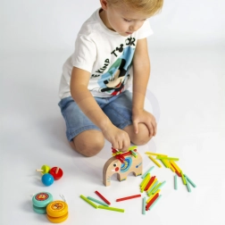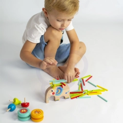 Discover a versatile wooden game set from TOOKY TOY that brings children hours of creative fun. The cute elephant serves as a base for stacking, the colorful sticks can be used for pick-up sticks, and the set also includes two yo-yos and a spinning top. The game supports fine motor skills, coordination and patience, is made from safe, non-toxic materials, and effectively develops logical thinking.