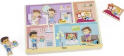 This wooden puzzle brings fun learning through play. When the correct piece is placed into the cut-out slot, a realistic sound related to the picture is played, supporting auditory perception and associations. Thanks to its sturdy construction, the toy is durable and safe for everyday use.