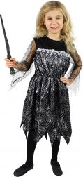 This witch costume is the ideal choice for little girls aged 4-6 (height 105-116 cm). The costume consists of a black dress with a silver cobweb that provides a mysterious and magical look. It's designed to be comfortable to wear and allows free movement.