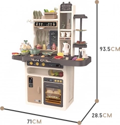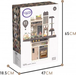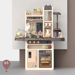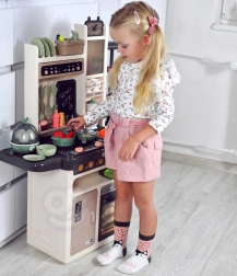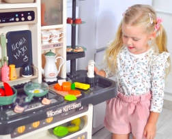 The Woopie Home Kitchen playset turns pretend cooking into a realistic experience. Switch the rotary knob to activate the burner with light, cooking sounds, and safe steam, the range hood offers melodies and lighting with adjustable volume, and the faucet with a closed water circuit lets kids “wash dishes” without spills.