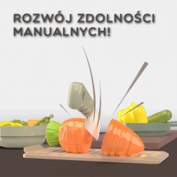 - Supports imagination and fine motor skills with hook-and-loop food cutting and role-play activities.