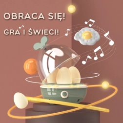An interactive range hood with light and melodies, an egg boiler with LED and sound, and a chalk menu board inspire creative culinary scenes.