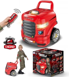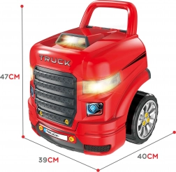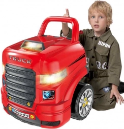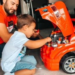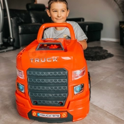 Kids enjoy riding a robust truck while also playing mechanic in a home workshop – two play modes in one set.