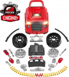 • Realistic mechanic play: service wheels, fenders, engine, spark plugs, and grille.