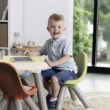 A stylish and comfortable children's chair for indoor and outdoor use with anti-UV protection, 50 kg load capacity, and made from at least 90% recycled material. Lightweight, stable, and easy to maintain – ideal for play, drawing, and relaxing.