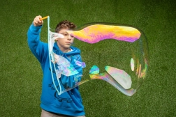 The String wand and quality solution let you make really large, stable bubbles with a striking rainbow effect – perfect for garden shows.