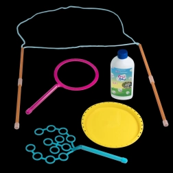 - 3 wands included: Tree (many small bubbles), Hoop (medium bubbles), String (extra-large bubbles)