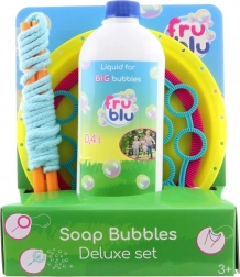 Discover outdoor fun with the versatile FRU BLU bubble set that creates tiny, medium, and giant bubbles. The package includes three wands (Tree, Hoop, String), a bowl for the solution, and 400 ml of high-quality solution for easy creation of rainbow mega bubbles for the whole family.