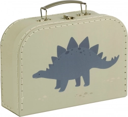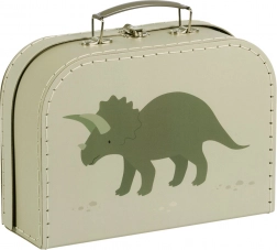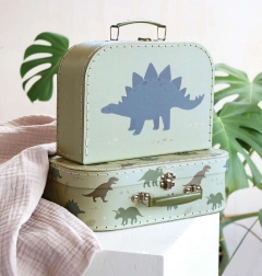 A cute set of two cardboard suitcases with a dinosaur design, ideal for a child’s room and for travel. It offers 2 sizes, durable cardboard with polyester stitching, a metal handle and clasp for secure closure, and a stylish dinosaur motif to make storing toys and art supplies more fun.
