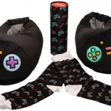 Bold embroidery of controller buttons delights every video game fan and adds style to your at-home outfit.