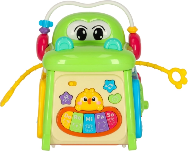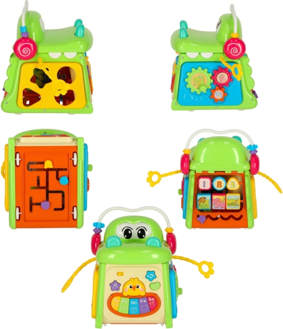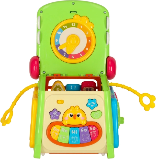 The cube is ideal for children from 18 months. Thanks to the wheels, it is easy to carry and move, making it fun at home and on the go. The colorful design and wide range of activities keep a child’s attention and support sensory stimulation and learning through play.