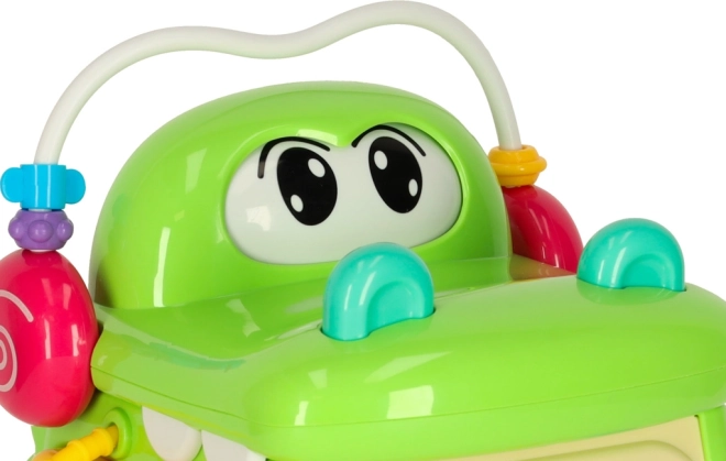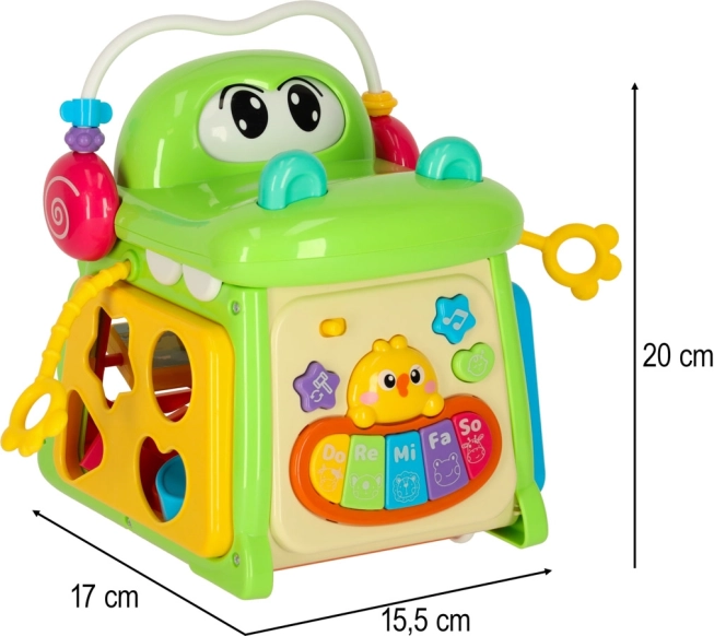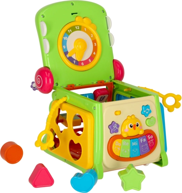 This smart and safe toy supports children’s development naturally. While playing, kids practice fine motor skills, logical thinking, and hand–eye coordination as they insert shapes, press buttons, turn elements, and watch the piano’s light and sound effects. The construction with rounded edges and a practical handle is tailored to small hands.