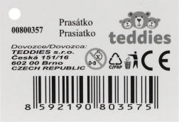 The velvety plush surface is safe and invites cuddling, while the plastic parts provide durability.