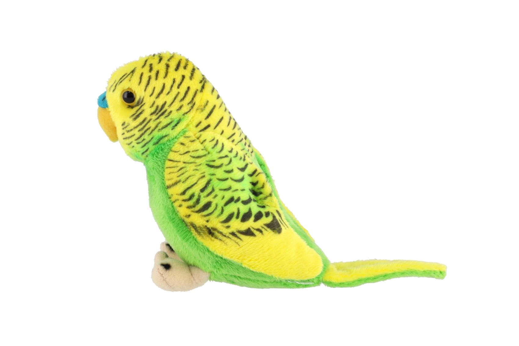 A cute plush budgie in green and yellow will delight nature lovers big and small. It is made from soft, silky material, features realistic coloring, and is ideal for cuddling, play, and decoration. Thanks to its quality craftsmanship, it is safe for children from 0 months.