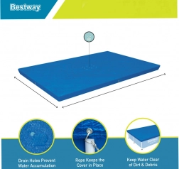 Cover for Bestway Pool measuring 224 cm x 154 cm is ideal for protecting an above-ground pool size 221 cm x 150 cm from dirt and adverse weather.