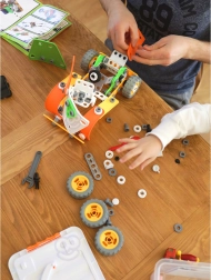 The Woopie STEM 5-in-1 construction set includes everything kids love: colorful parts, screws, wheels, and tools to easily assemble, disassemble, and rebuild. Flexible elements encourage unique combinations and models with realistically moving parts.