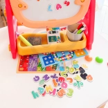 Everything kids need is included: magnetic alphabet and numbers, markers, chalks, eraser, a practical shelf and cup for supplies, and two board games for shared fun. Compact dimensions make it easy to place in a child’s room.