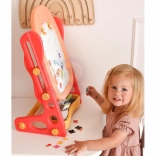 The double-sided WOOPIE board supports creativity, fine motor skills, and learning letters and numbers through play. One side is a white magnetic board for dry erase, the other is a chalk surface. With height adjustment, it easily adapts to your child’s growth.