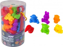 - 36 rubber animal figurines (6 types), 6 bowls, 2 tweezers