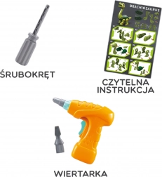 Dinosaur Brachiosaurus from the well-known brand WOOPIE takes you back to the time when these fascinating creatures roamed the Earth. The toy is designed to promote the manual skills and creativity of your child, supporting their fine motor skills. The set includes 28 plastic pieces, which your child can assemble using a functional screwdriver or electric drill with bidirectional rotation, allowing screwing and unscrewing.