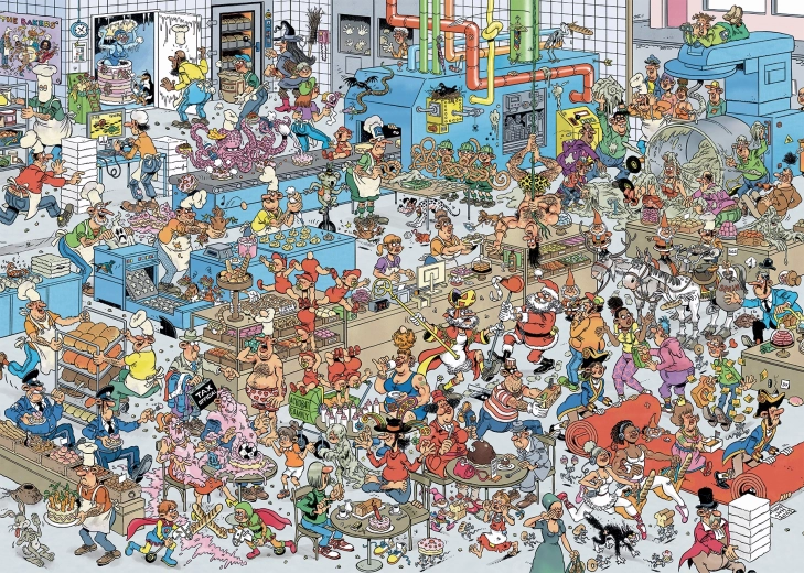 Step into the bustling world of a bakery from the legendary JAN VAN HAASTEREN series. Every scene is full of humor and unexpected situations – look for iconic motifs like the shark fin, stray hands, false teeth, Saint Nicholas, and even the artist’s self-portrait. Thanks to precise printing and rich colors, assembling is a joy from the first to the last piece.