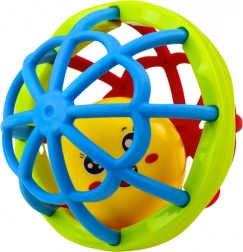 A light and safe sensory ball for babies made of soft elastic rubber offers varied textures, bright colors and an integrated rattle to support sensory development and fine motor skills. Easy to grasp, durable, and simple to clean – an ideal toy for first explorations of the world.