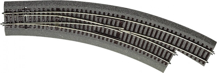 The Roco Line turnout combines a pair of curves with radii of 604.4 mm and 542.8 mm in a rightward direction. It can be operated manually or remotely using special electric turnout motors. Its sturdy and durable construction ensures long life, while the use of zinc-silver alloy guarantees excellent electrical conductivity and corrosion resistance.