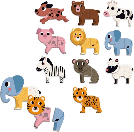 The Vilac Funny Animals magnet set features ten animals, each composed of three pieces. Combine them as you wish and create unique and entertaining animal combinations - such as a tiger head, cow body, and elephant tail. This toy set offers no limits to your creativity and imagination.