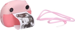 The camera has a built-in battery with 750mAh capacity providing up to 180 minutes of operation and can be easily recharged using the included USB cable. Two rolls of photo paper and a practical strap for easy carrying are included.