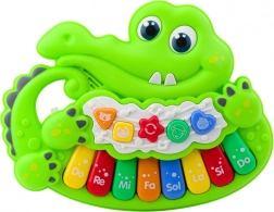 Interactive crocodile-shaped piano is a colorful and cheerful musical toy that engages children and helps them develop sensory skills through play. The friendly crocodile offers a range of fun features that allow exploration of the world of sounds, melodies, and animal noises in a simple and intuitive way.