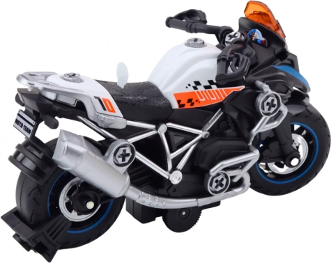 Made from durable and safe plastic, the toy is characterized by long-lasting durability even with intense use. All components are carefully adapted for children's hands for enjoyable play. The motorcycle is powered by batteries included in the package, allowing for immediate play after opening the box.
