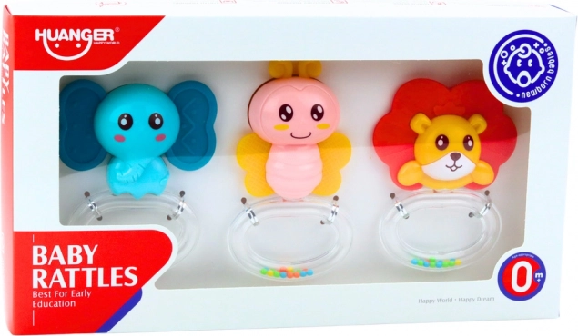 The rattles feature vibrant, attractive colors that capture the baby's attention, and the colorful beads inside create gentle sounds when shaken. This set is packaged in a clear box, making it a great gift for newborns.