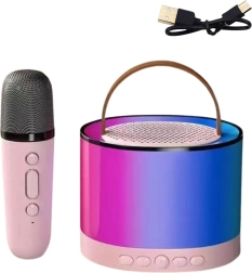 Portable karaoke speaker with wireless microphone is ideal for home entertainment or parties, combining a compact design with modern features such as Bluetooth and RGB lighting.