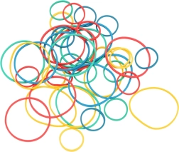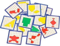 Double-sided pattern cards of varying difficulty teach children to recognize shapes, colors, symmetry, and angles. Just stretch the correct rubber bands and copy the template.