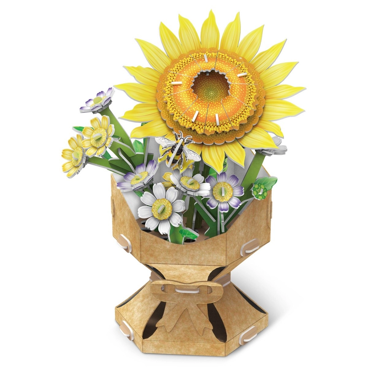 Assemble a unique and colorful sunflower bouquet from our 3D puzzle set, which includes 102 pieces. Since all elements are pre-punched, you do not need any additional tools such as glue or scissors.