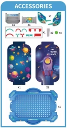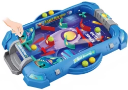 A fun tabletop pinball game for kids from WOOPIE brings space adventures in a compact format. It offers 2 play layouts, easy assembly, and the option to play solo or in a group. Colorful elements, functional flippers, and a launcher support hand–eye coordination and provide lots of fun while tallying points and beating high scores.