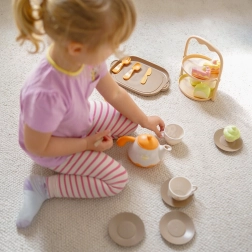 Lightweight, child-friendly components with rounded edges fit small hands well and encourage fine motor skills. The set in pastel colors is ideal for everyday play and learning through the roles of host and server.