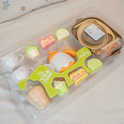The stylish WOOPIE children’s tea set with desserts offers up to 25 pieces for fun afternoon tea parties. Kids can pour tea, serve pastries, and develop imagination, fine motor skills, and social skills. The gentle pastel colors and safe design will delight every little host from 3 years old.
