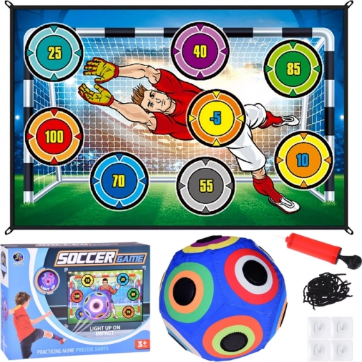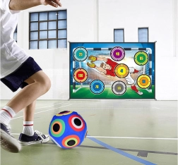 The soccer game set with target board is designed to be safe and child-friendly. It is made from durable, non-toxic materials that are soft and safe. The colorful and attractive target board captures children's attention and encourages exercise. The light-up ball brings an extra surprise to the game; it lights up when thrown, increasing the fun. The game is easy to operate; children can try to shoot the ball into the holes by themselves, developing precision and concentration. Furthermore, it supports motor skill development; throwing, aiming, and catching help exercise fine motor skills and hand-eye coordination.