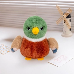 The plush duck is a beautiful toy in many color tones that is guaranteed to grab attention. Made of soft and pleasant plush, it combines shades of green, brown, yellow, and blue, creating a faithful replica of a wild duck. Its round head, sprawling little wings, and characteristic yellow beak give it a unique charm that wins the hearts of both children and adults.