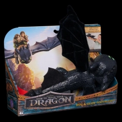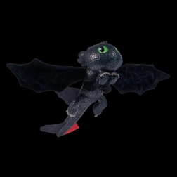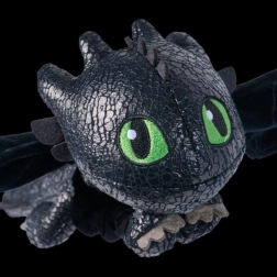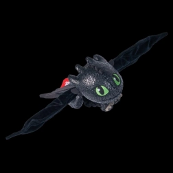Adorable Toothless plush from the movie How to Train Your Dragon, 30 cm in size, will delight both young and older fans. It has clever wings with a hook-and-loop strap for hugging your arm, and thanks to the rubber grips you can also launch the little dragon into the air like a slingshot. A great buddy for play and cuddles, recommended from 4 years.
