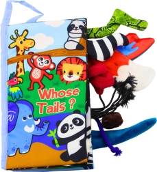 Crunchy pages and protruding animal tails with various textures and colors stimulate the child's senses, develop their curiosity and manual skills. Colorful illustrations of animals, such as a zebra or giraffe, encourage learning and play. The book is light and easily portable, ideal for travel or walks.