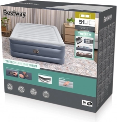 The Bestway inflatable mattress is an ideal choice for those seeking a quick and comfortable solution for overnight stays at home and in nature. Thanks to the TRITECH™ three-layer material, the mattress is resistant to deformation and ensures long-lasting durability. The I-beam technology provides maximum stability and support.